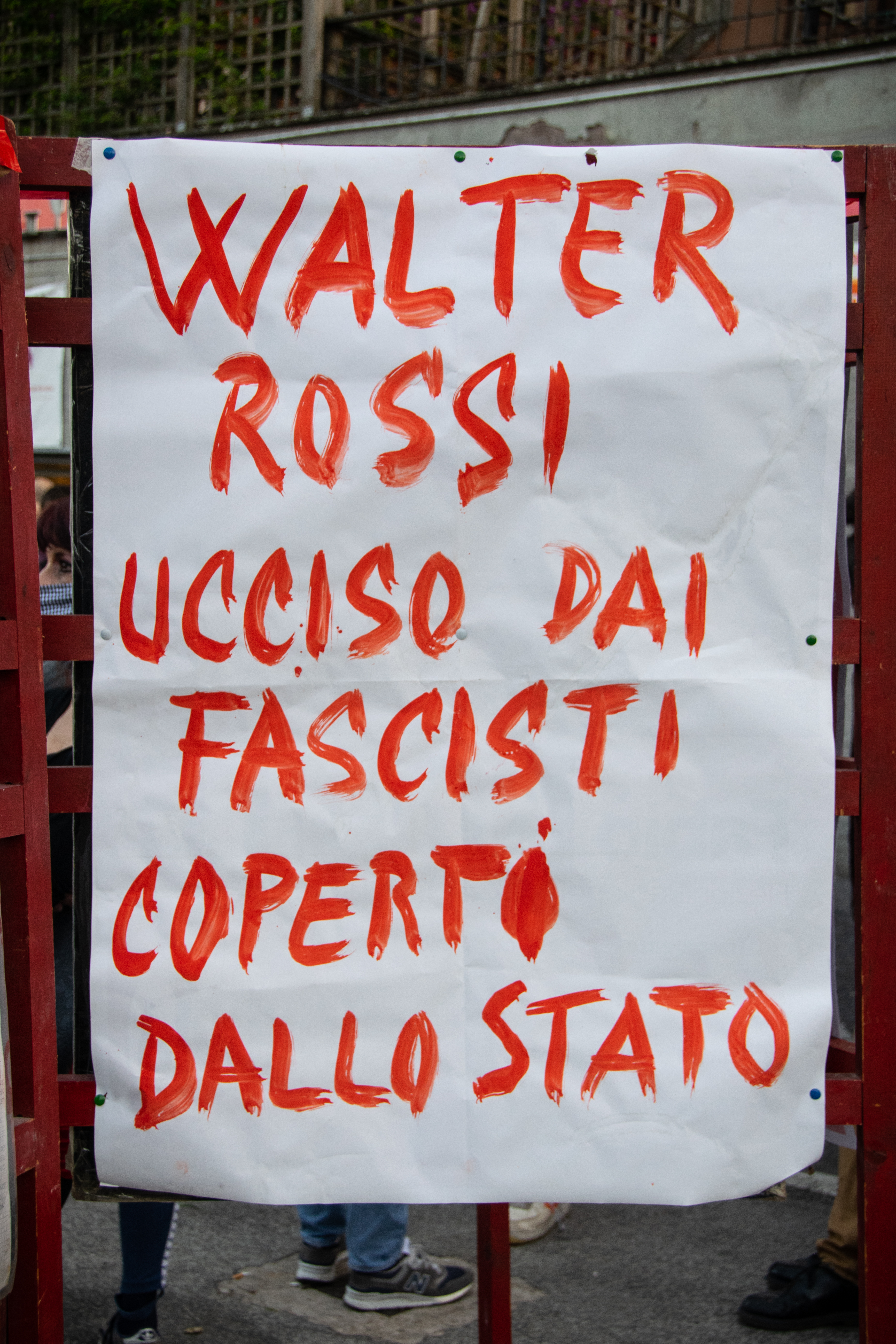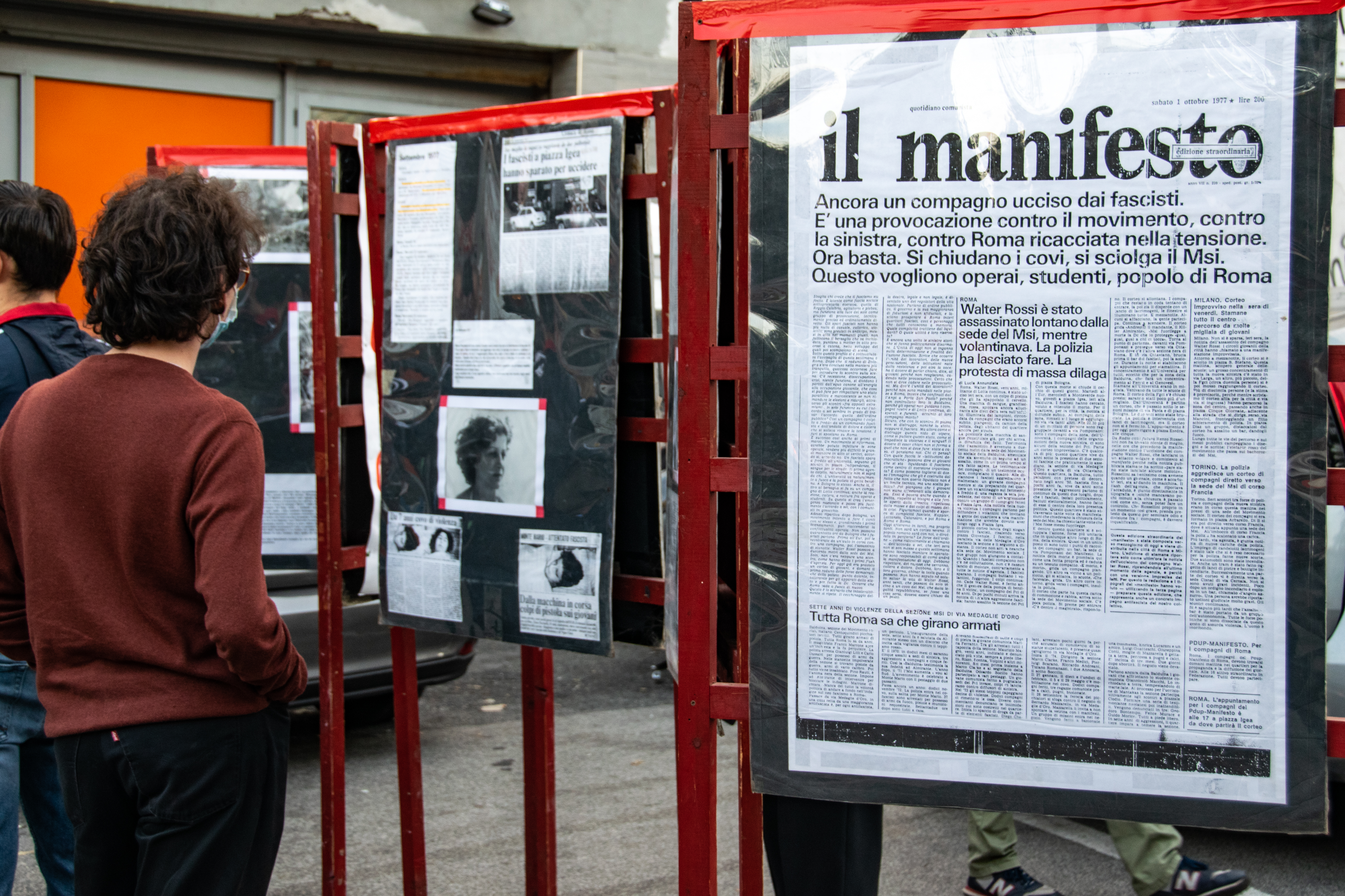 Un proiettile ferisce un benzinaio, un altro colpisce alla testa Walter Rossi, ragazzo di 20 anni militante di Lotta Continua. Nei concitati minuti successivi, la polizia carica la manifestazione e le persone che si trovano vicino al corpo del ragazzo ferito, impedendo ai compagni di prestare soccorso e senza chiamare un’ambulanza. Caricato il corpo su un furgone che passava nelle vicinanze, Walter Rossi arrivò all’ospedale Santo Spirito già morto.