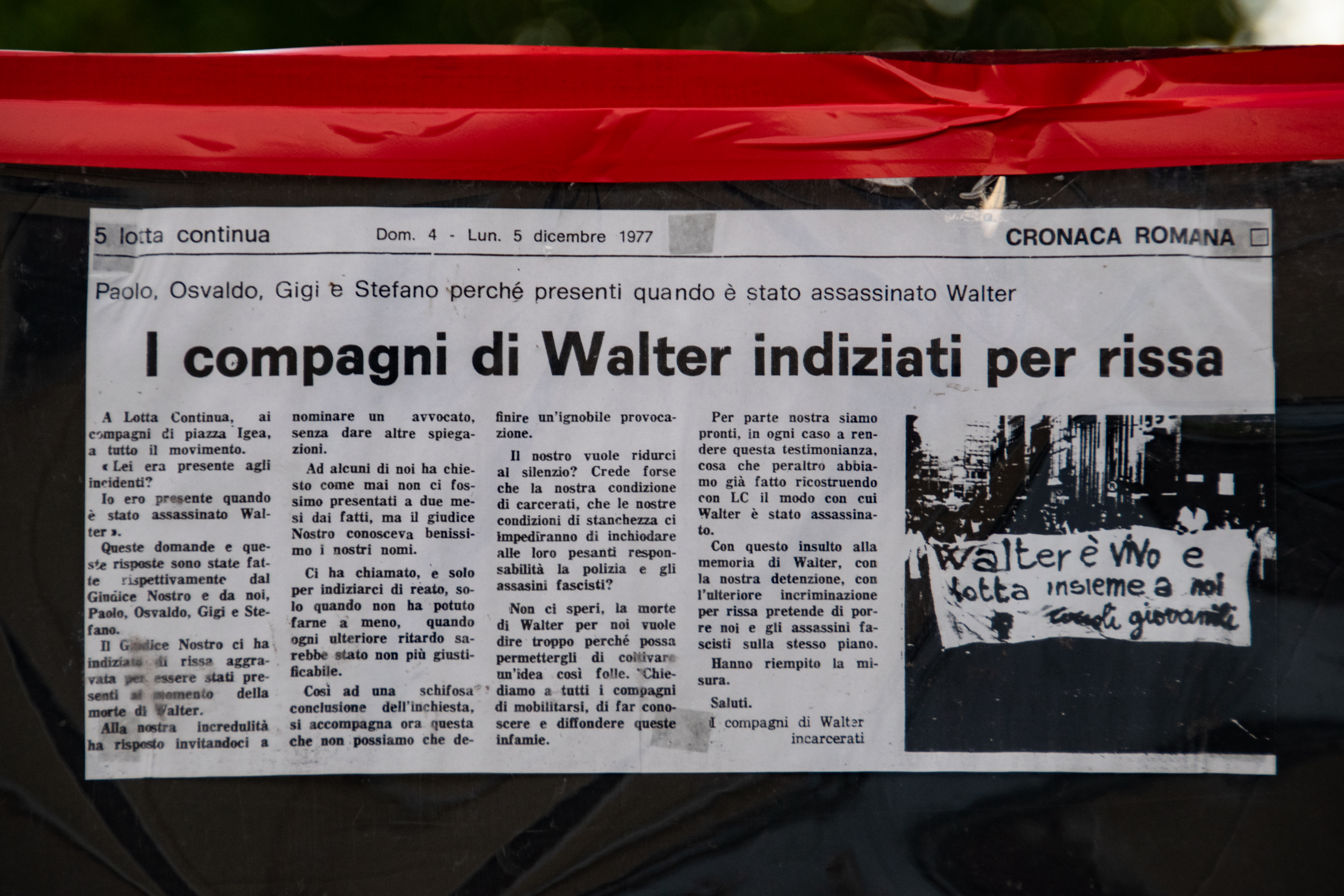 Pochi giorni dopo l’assassinio di Walter Rossi, diversi militanti di sinistra vennero arrestati e lo stesso giudice che indagava al caso Rossi, condannò per “rissa aggravata” alcuni di loro a un anno e mezzo di carcere.