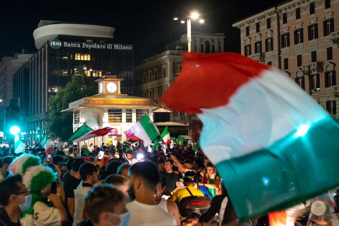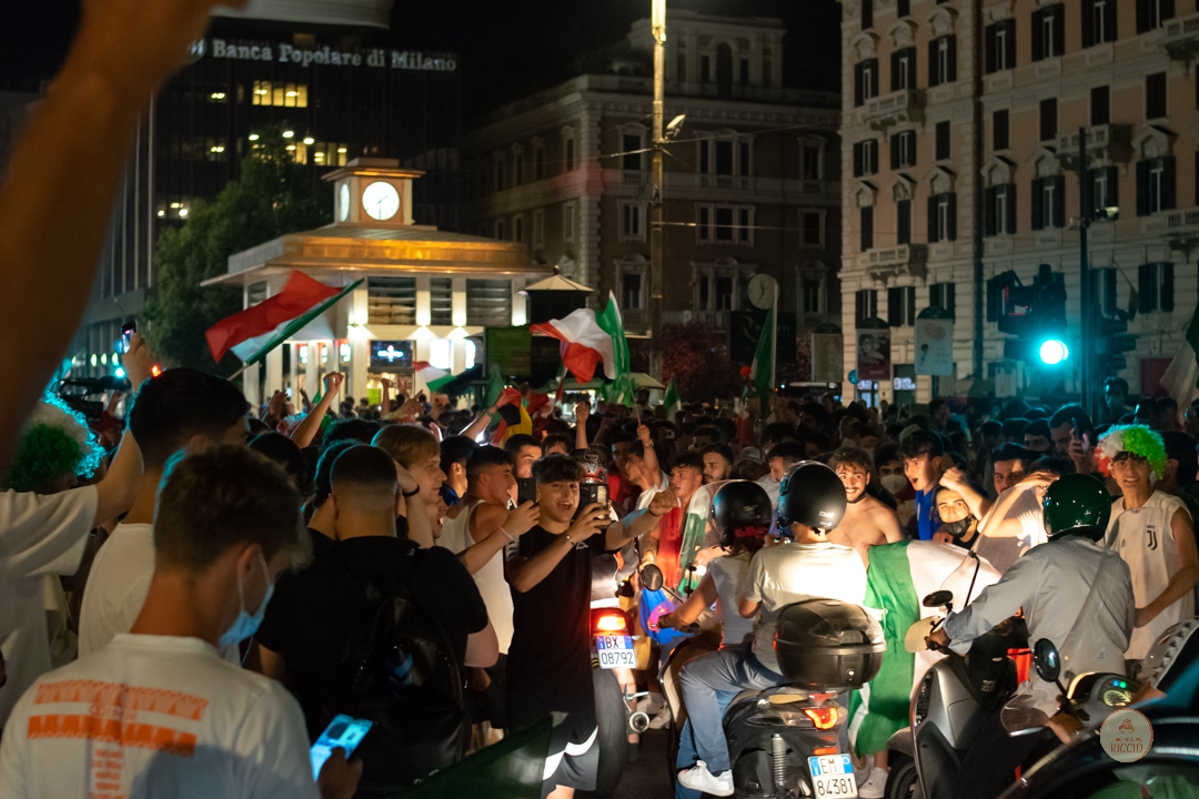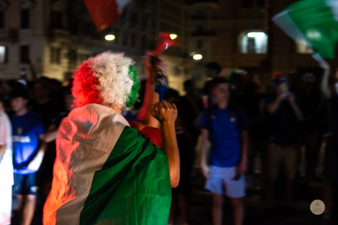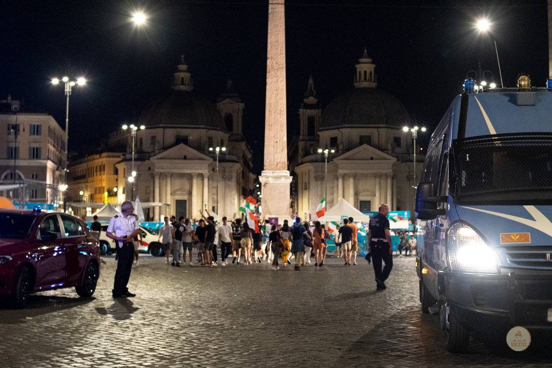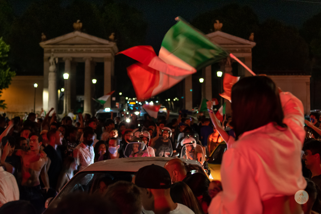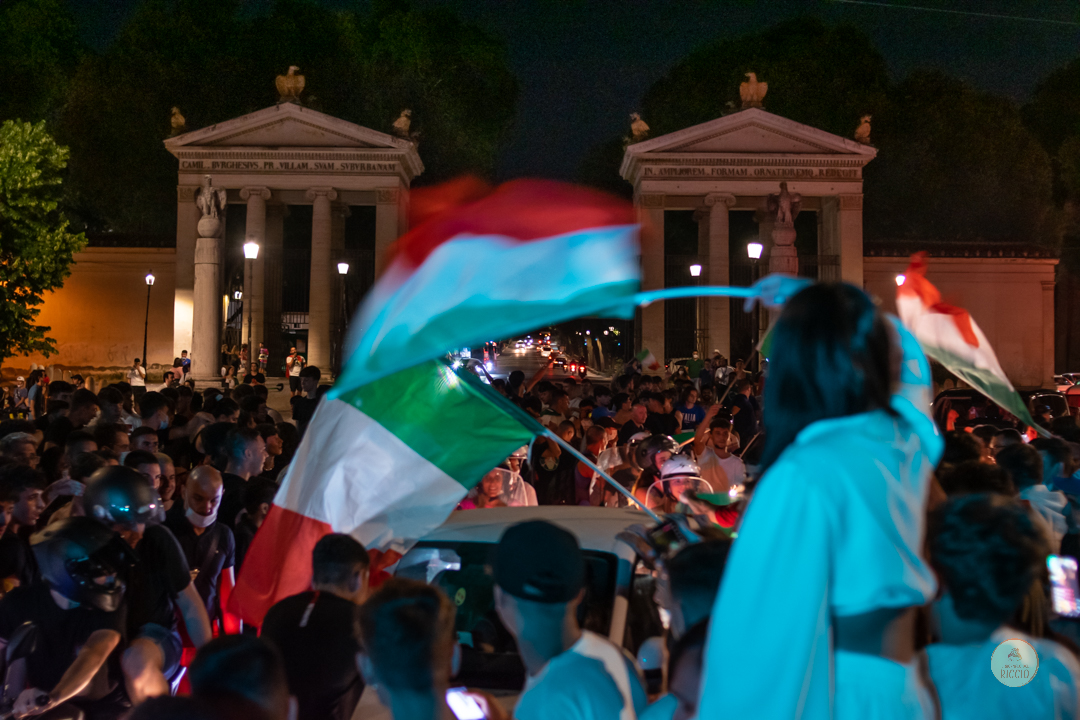 I tifosi si sono riversati in Piazzale Flaminio al termine della partita, trasmessa nell’adiacente Piazza del Popolo, dove si trova il Football Village per Euro2020.