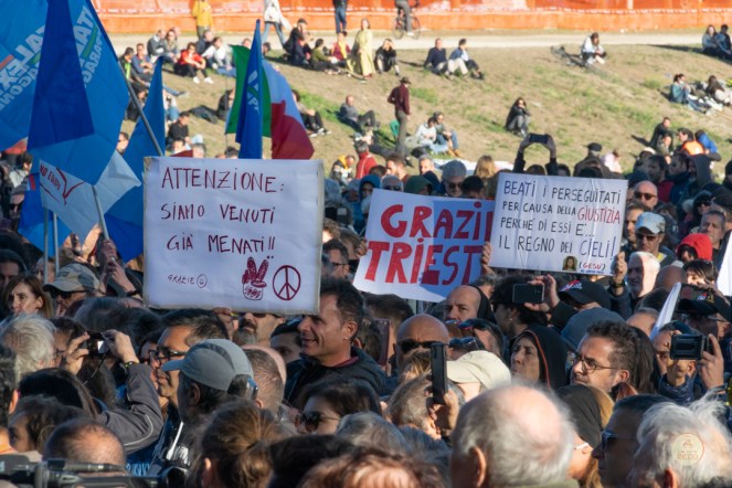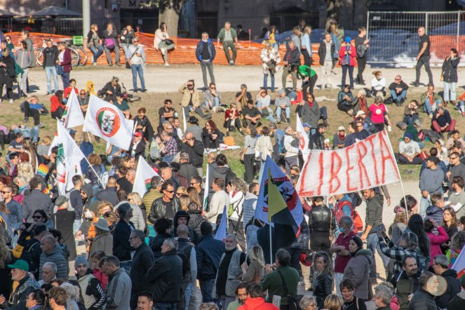 Com’è comprensibile, chi è li per la condivisibile, o comunque rispettabile, scelta di opporsi politicamente al Green Pass su base normativa, politica e scientifica è completamente sopraffatto dagli eventi e senza guida; questa è la grande fetta di quella piazza che ha cercato per un anno e mezzo un’interpretazione critica adeguata al complesso quadro della pandemia e della sua tragica gestione da parte del sistema liberista in occidente e su cui, inettamente o divisi settariamente, a sinistra non si è riusciti a dare direzione e guida.