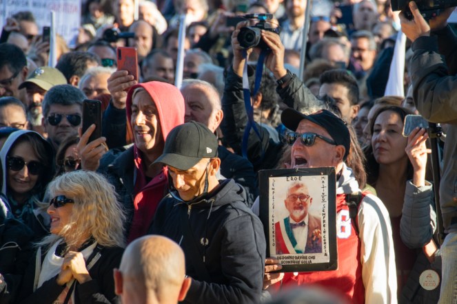 Per quanto riguarda le persone accorse al comizio, troviamo un pubblico eterogeneo, in parte seguace del filone d’interventi paradossali visto sul palco, ma in altra, probabilmente la maggiore, da persone che non votano più, disilluse, impaurite da due anni d’informazioni contrastanti da parte dei media ufficiali e contraddittorie da parte governativa, base perfetta per alimentare il mostro social delle fake news, gancio su cui la disperazione ha trovato un tossico appiglio.