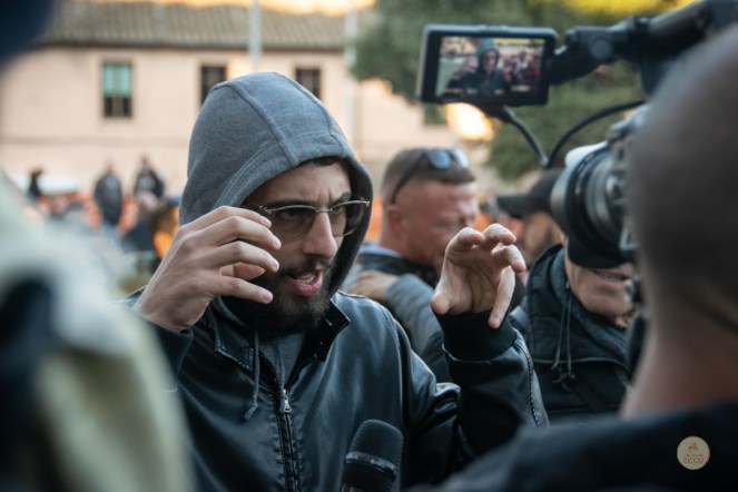 – malgrado il comizio sia promosso dalle Sentinelle della Costituzione, si dà subito un leggero colpo di solidarietà ai fascisti di Sabato che “sono caduti in una trappola, Castellino cercava di fermare le persone, non volevano assaltare”;