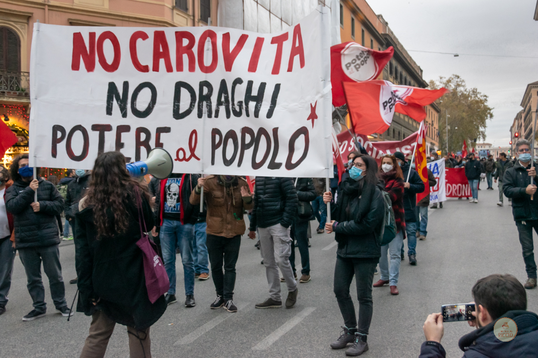 Sabato 4 Dicembre si è svolto il NO Draghi Day in 23 piazze dei principali capoluoghi italiani, in cui sindacati di base, partiti e associazioni della sinistra radicale hanno manifestato l’opposizione alle politiche economiche dell’attuale governo Draghi. Alcuni dei temi affrontati riguardano la gestione dei fondi a debito del Piano Nazionale di Ripresa, rimodulazione dell’IRPEF a vantaggio delle classi abbienti, legge di bilancio, legge Fornero, aumento generalizzato delle bollette, precariato e disoccupazione.