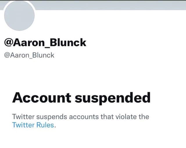 Per queste parole, l’account Twitter di Aaron Blunck è stato prontamente sospeso. L’atleta ha denunciato il fatto su Instagram con la condivisione di un commento di un follower che scrive: “Aaron Blunck è qui fuori a dire la verità e ad essere punito dal suo stesso governo”, ed un altro più diretto che accusa il governo degli Stati Uniti di essere l’artefice della chiusura del suo account: “Twitter ha eseguito l’ordine delle élite dominanti occidentali. La punizione arriva abbastanza velocemente”.