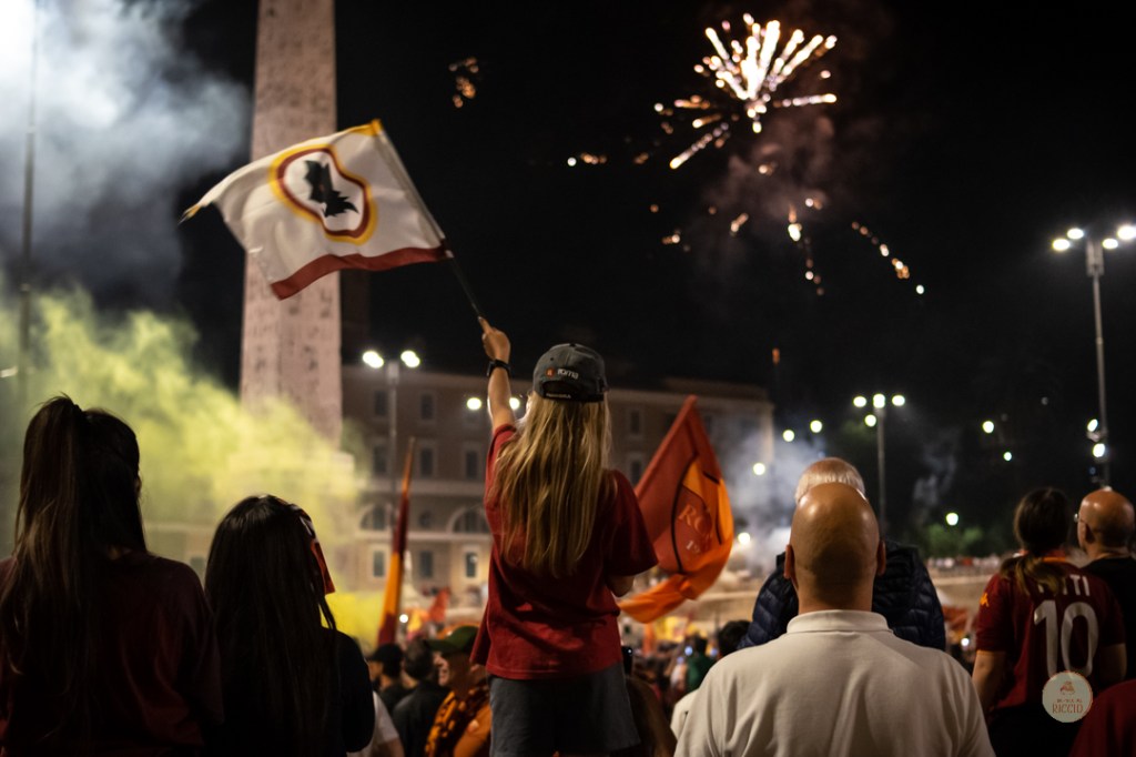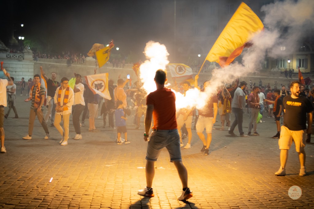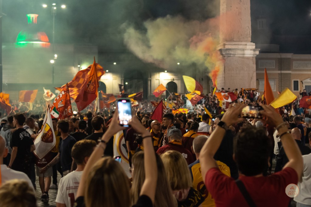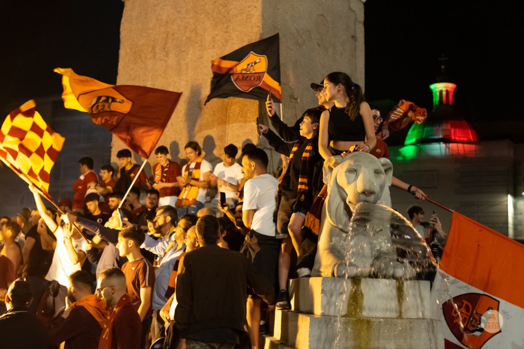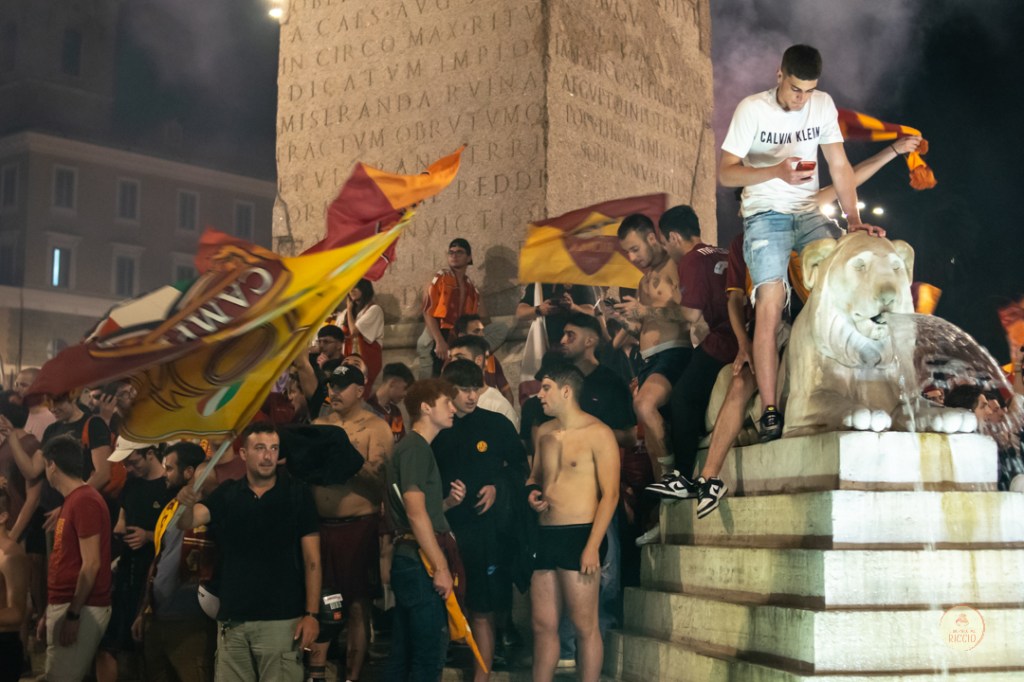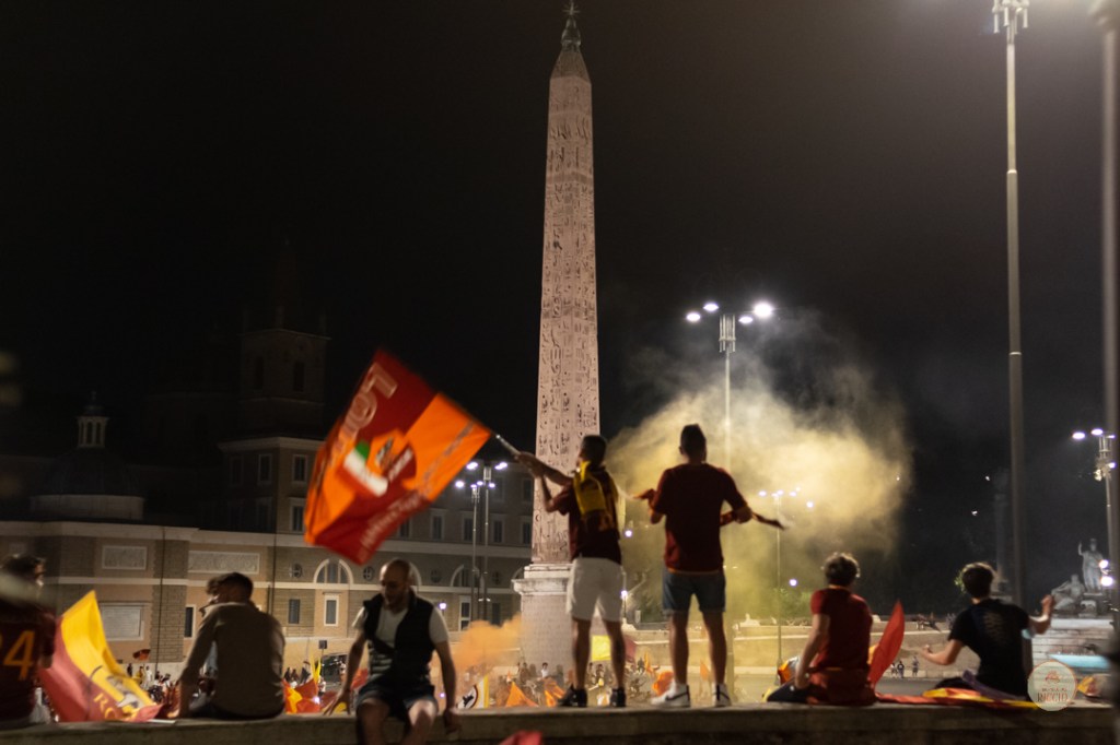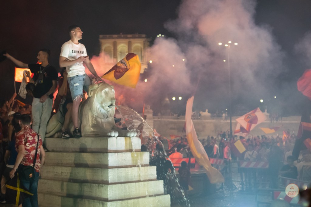 Come consuetudine dopo la vittoria di un titolo, i tifosi romanisti hanno invaso le strade della Capitale per festeggiare l’impresa. A seguire, alcuni scatti da Piazza del Popolo, una delle mete principali del centro cittadino in caso di festeggiamenti sportivi.
