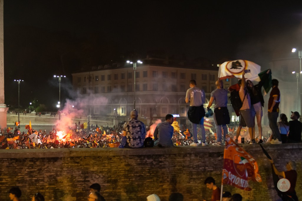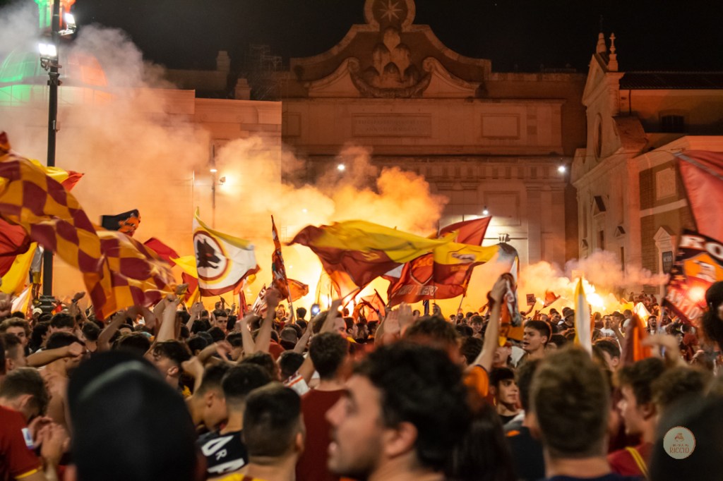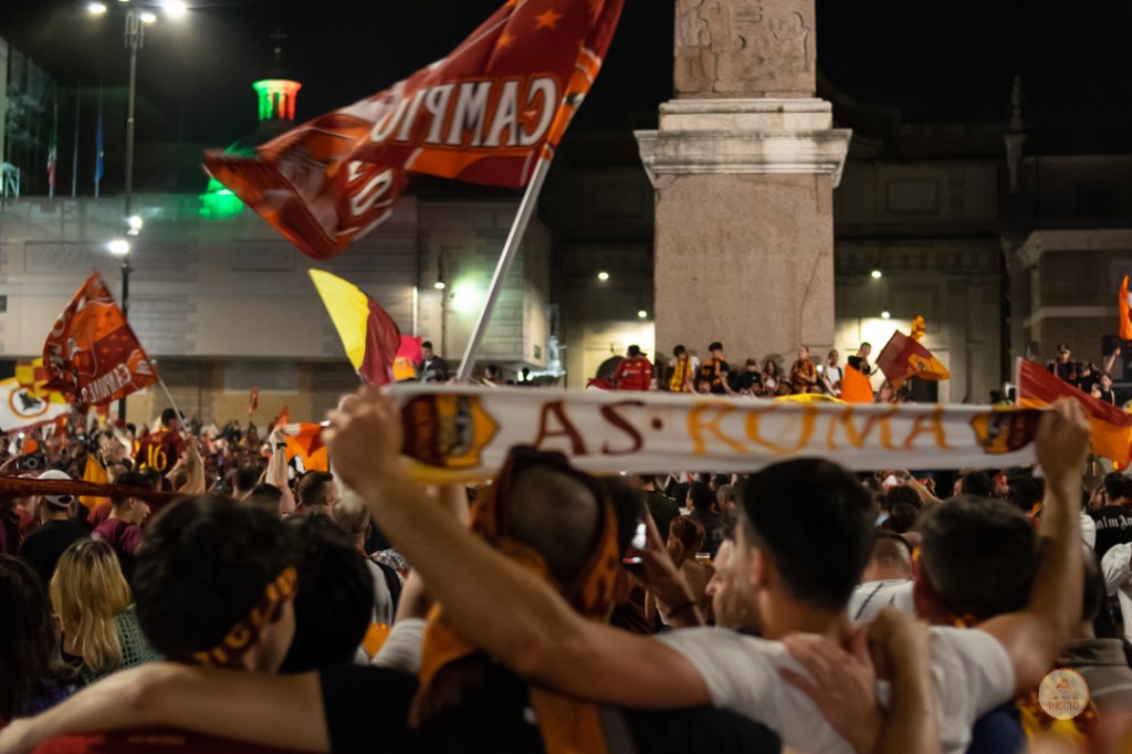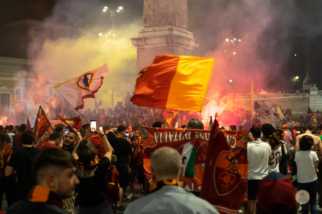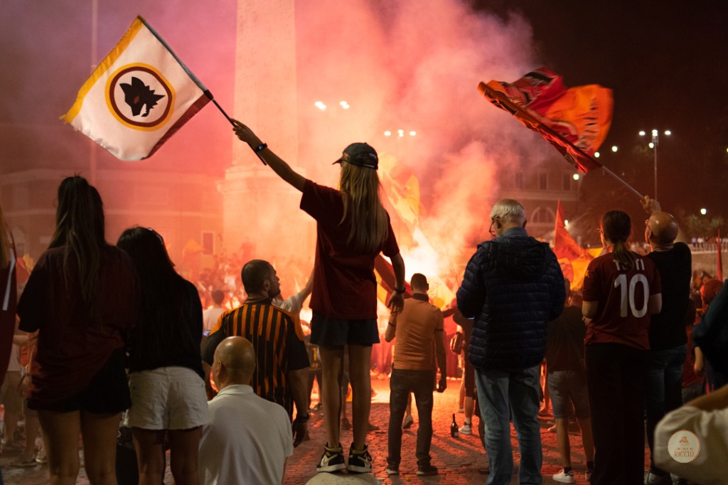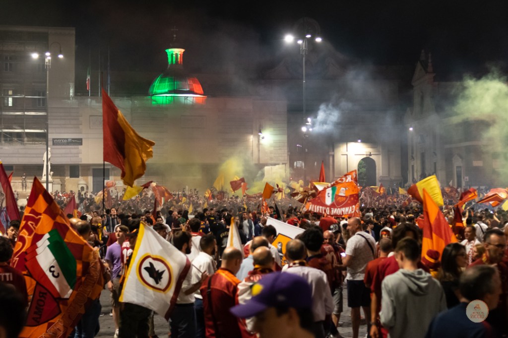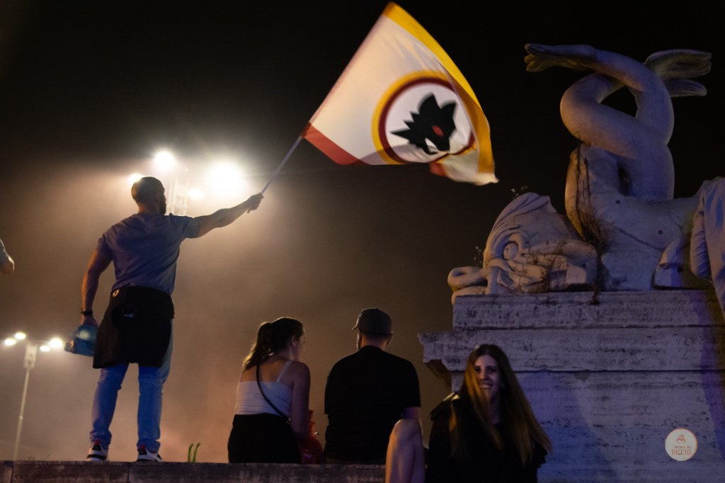 Come consuetudine dopo la vittoria di un titolo, i tifosi romanisti hanno invaso le strade della Capitale per festeggiare l’impresa. A seguire, alcuni scatti da Piazza del Popolo, una delle mete principali del centro cittadino in caso di festeggiamenti sportivi.