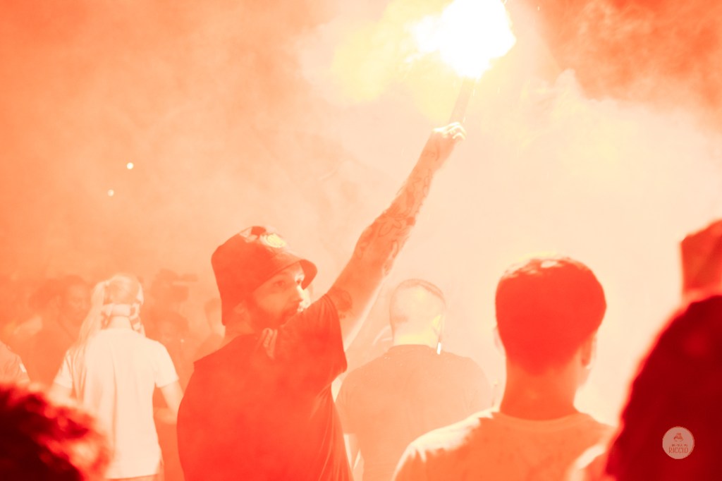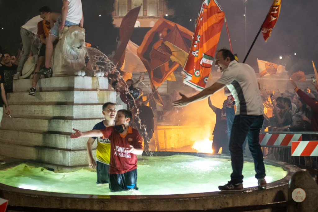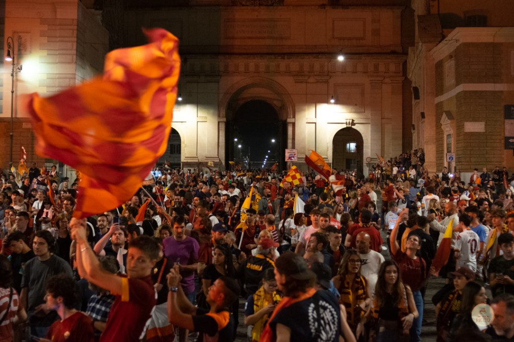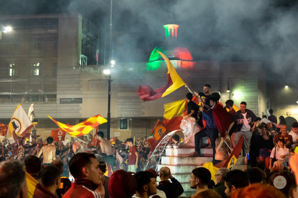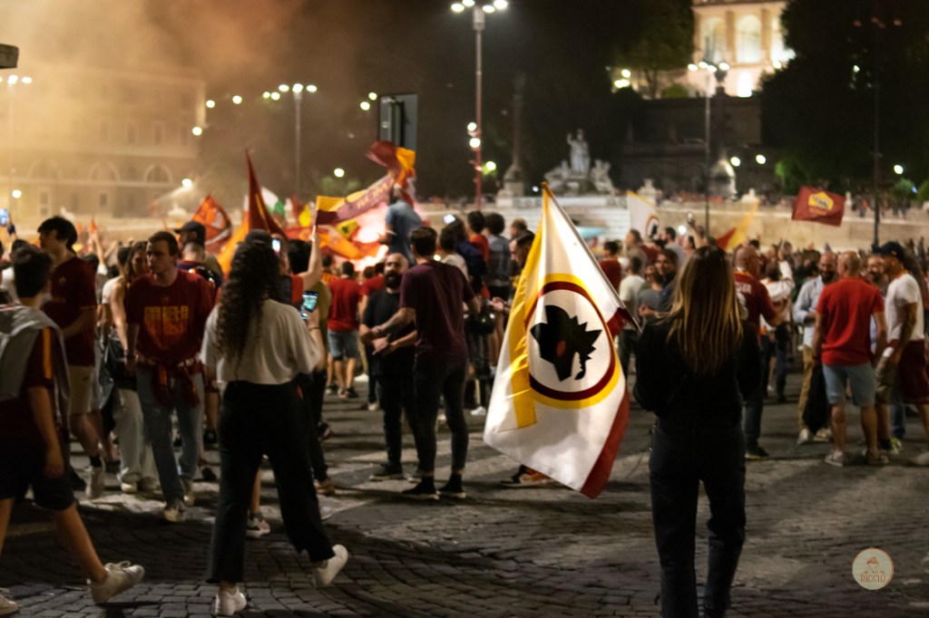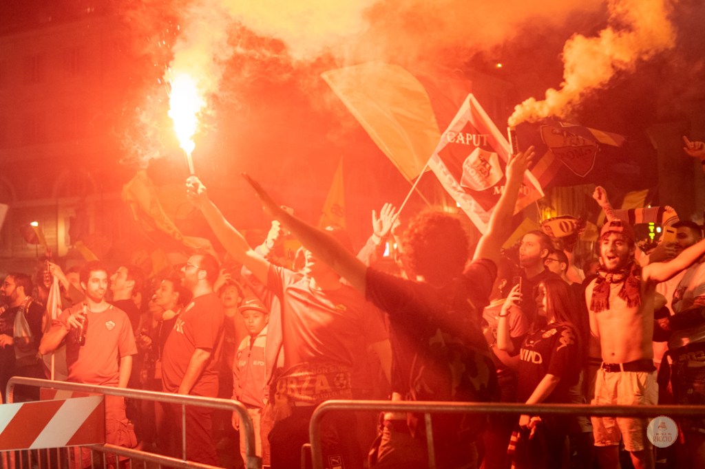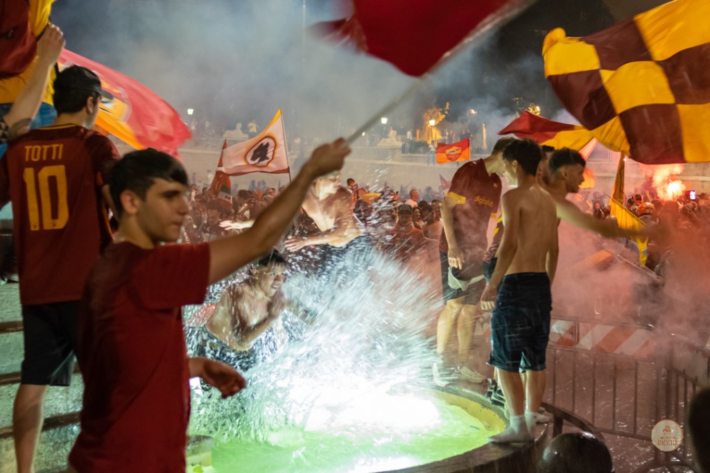 Come consuetudine dopo la vittoria di un titolo, i tifosi romanisti hanno invaso le strade della Capitale per festeggiare l’impresa. A seguire, alcuni scatti da Piazza del Popolo, una delle mete principali del centro cittadino in caso di festeggiamenti sportivi.