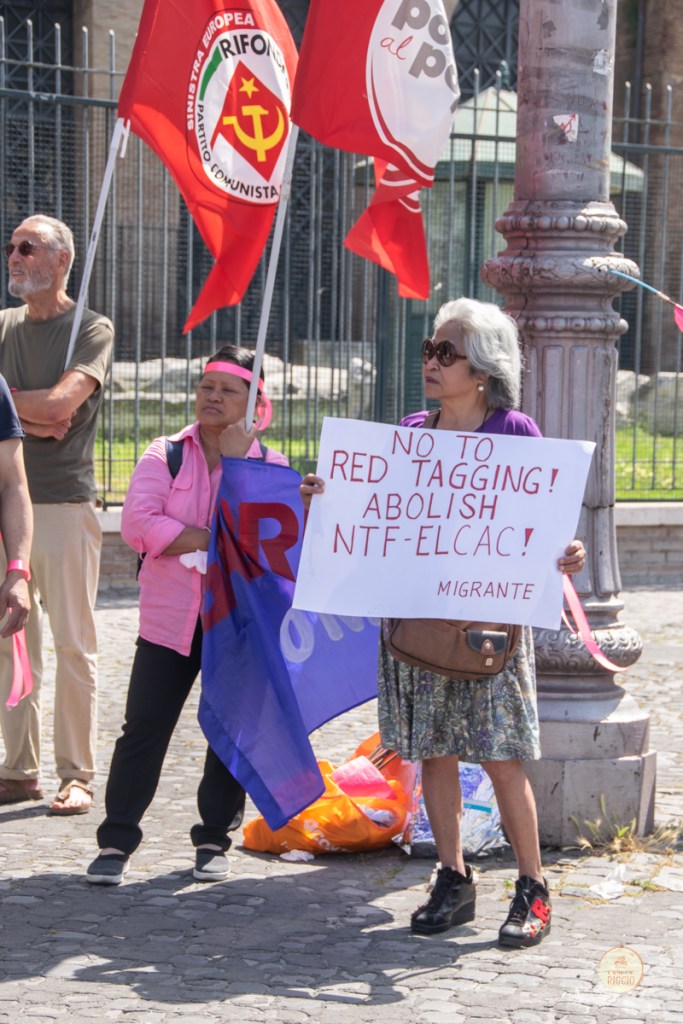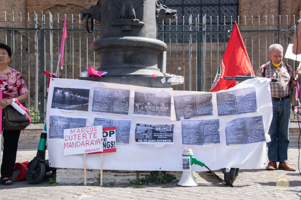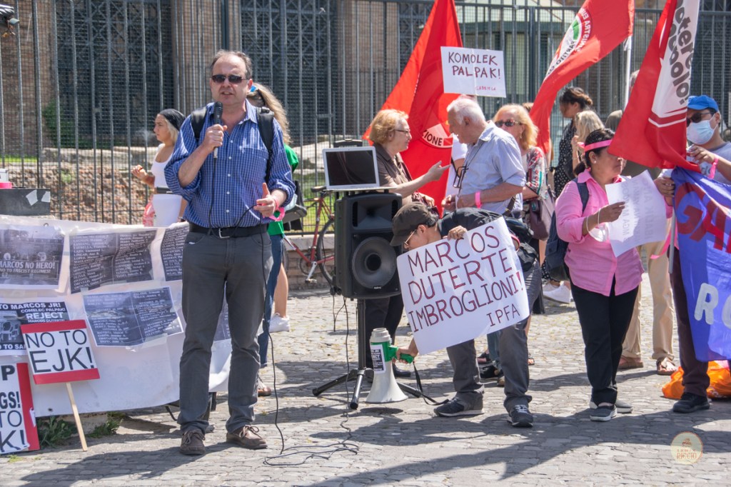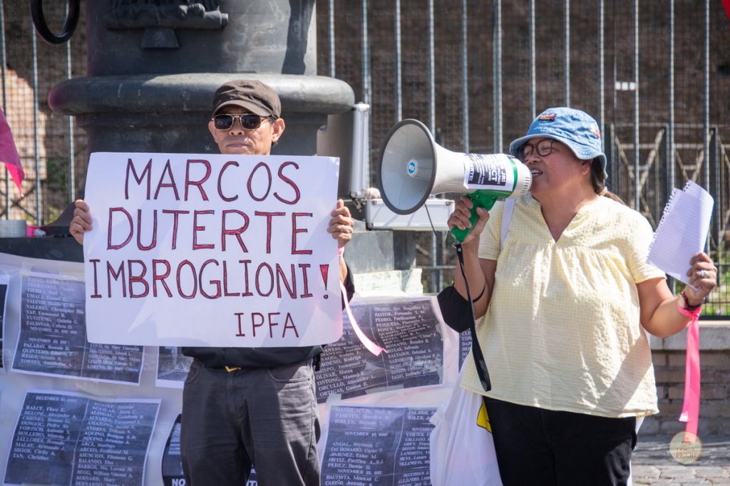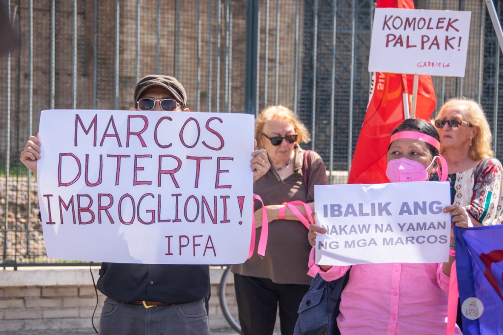 Nel discorso di apertura, il presidente dell'Associazione Italia Pilipino Friendship (IPFA) ha spiegato lo scopo dell'azione di protesta e ha esteso la sua ferma condanna per l'inganno avvenuto. Ha riferito che è chiaro che Marcos e Duterte hanno approfittato del loro potere e controllo per manipolare i risultati elettorali. Umangat-Migrante e Gabriela Roma hanno affermato in una dichiarazione che le ultime elezioni sono state tra le più sporche che si siano svolte nel nostro paese, poiché abbiamo assistito a un diffuso acquisto di voti, alla manipolazione dei social media da parte di troll a pagamento, intenso red tagging e distruzione multipla di macchine per il conteggio dei voti che hanno portato a lunghe file di votazioni in cui molti dei nostri connazionali non potevano più votare. Hanno detto che il beneficiario di queste truffe non è altro che il tandem Marcos-Duterte che fin dall'inizio abbiamo visto sfruttare la debolezza e la povertà della maggioranza del popolo filippino per vincere le elezioni. È chiaro che il popolo filippino non vuole più il regime di Duterte a causa degli omicidi sfrenati che hanno avuto luogo e che siamo caduti in estrema povertà sotto il suo governo. Inoltre non vogliamo che qualcuno come Marcos, un truffatore e figlio di un dittatore che ha rubato le casse del popolo, sostituisca Duterte. Il popolo filippino si è opposto da tempo al ritorno dei Marcos perché fino ad ora non ha potuto restituire ciò che ha rubato dalle nostre casse e ancora non ha potuto pagare i debiti alle vittime delle violenze effettuate quando erano in carica. Quindi la nostra chiamata è restituire il rubato e non il ladro. Sono intervenuti anche tutti i leader di RCDC, Reti Com, IPFA e altri leader a Roma. Infine, ha invitato tutti a rafforzare ulteriormente la forte unità e cooperazione affinché Marcos-Duterte non torni e a continuare la lotta iniziata per il raggiungimento di un governo onesto per tutti. Alla fine del programma, Sabay ha cantato contemporaneamente Bayan Ko mentre alzava il pugno come simbolo di intenso amore per la nostra amata madrepatria, le Filippine. Lunga vita al popolo filippino in difficoltà! Viva la Solidarietà Internazionale!