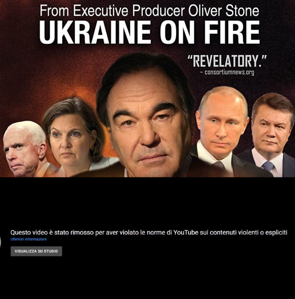 Il documentario “Ukraine on Fire” di Oliver Stone, caricato sul nostro canale e da noi sottotitolato in italiano, è stato arbitrariamente cancellato da YouTube.