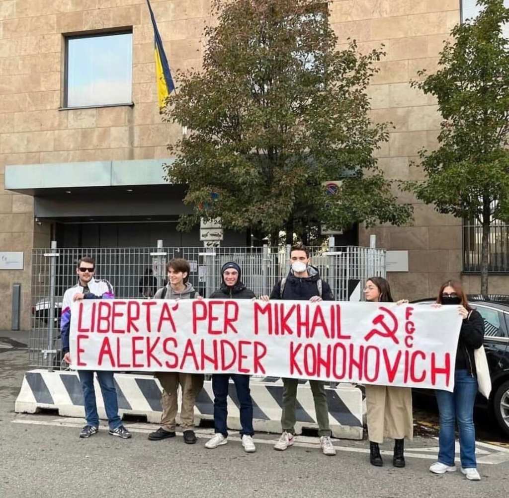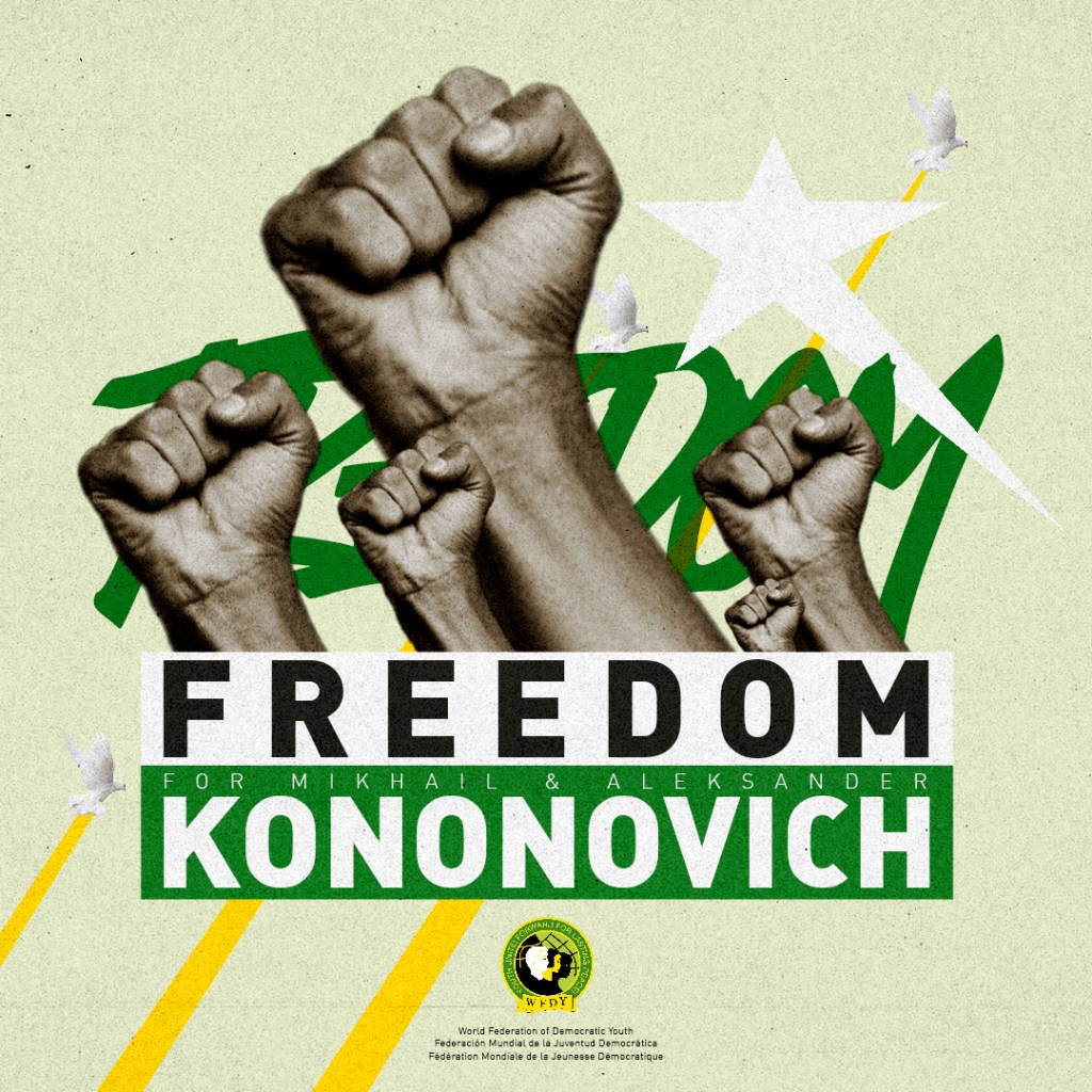 Per aumentare la pressione sociale a livello globale per il rilascio dei compagni Mikhail e Aleksander Kononovich, compagni della nostra organizzazione membro in Ucraina (LCYU), chiediamo a tutti i giovani antimperialisti e antifascisti di raddoppiare la loro solidarietà. A tal fine, chiediamo una Settimana Internazionale di Solidarietà con i Fratelli Kononovich durante la settimana che precede il 250° giorno del loro arresto. Vi chiediamo di riempire i social network di messaggi di solidarietà dal 4 all’11 novembre, di usare l’hashtag #FreeKononovich, di raddoppiare le azioni di solidarietà nelle strade, di fare pressione sulle istituzioni ucraine e sulle ambasciate nei nostri paesi, e di denunciare il ruolo dell’imperialismo e delle classi dominanti dei nostri paesi nella situazione di Mikhail e Aleksander.