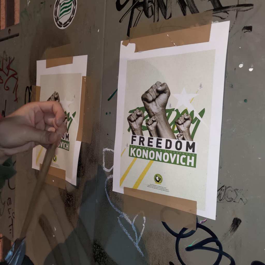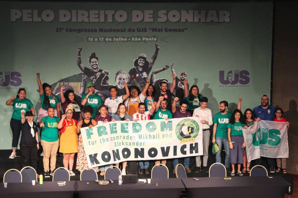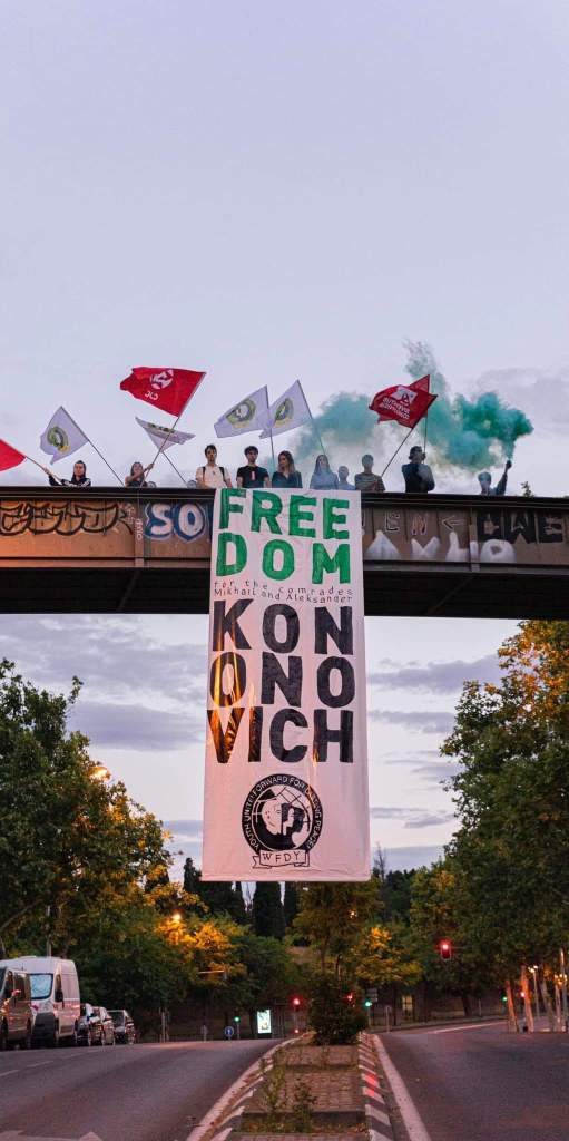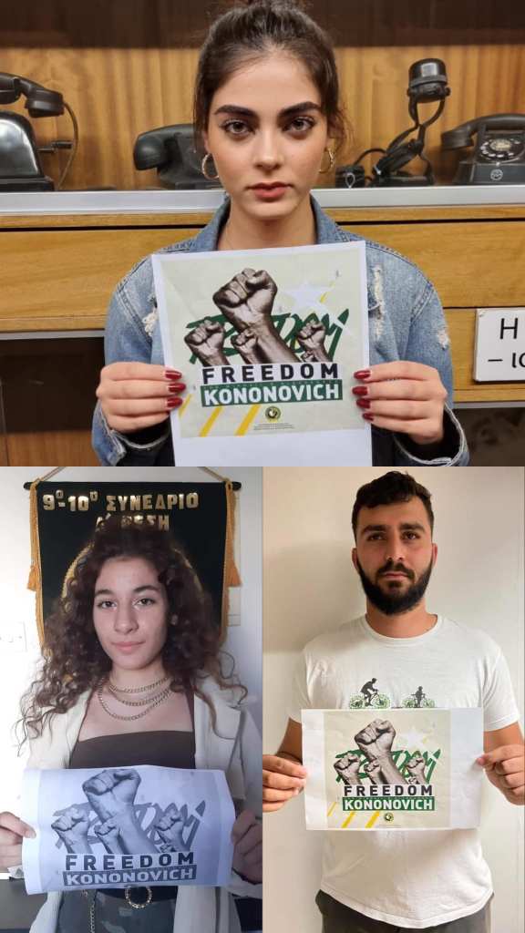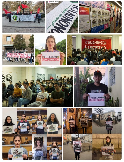 Grazie a tutti i compagni per il loro impegno in questa e in tutte le cause della gioventù antimperialista. Continuiamo a lottare per liberare i Kononovich, continuiamo a lottare per un mondo libero dallo sfruttamento e da ogni tipo di oppressione.”