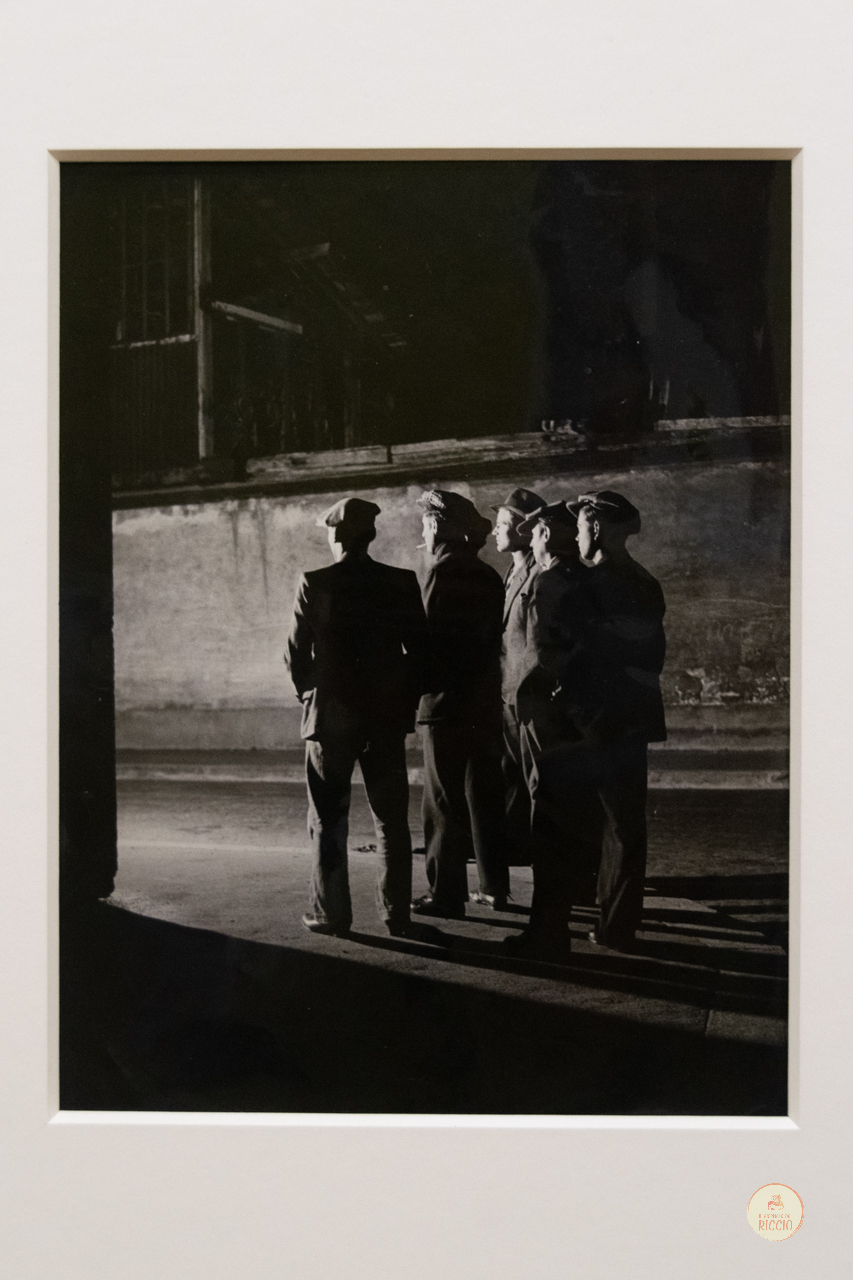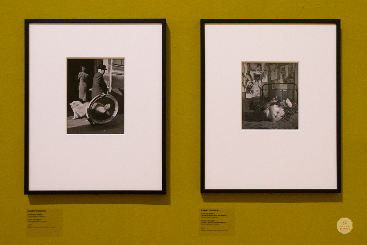 In apertura troviamo i maestri francesi della fotografia umanista, di strada e del reportage come Brassai, Willy Ronis, Janine Niépce e i celebri Robert Doisneau e Henri Cartier-Bresson, con alcune foto in formato provino da 10 cm in cui riconosciamo una scelta più collezionistica che espositiva.