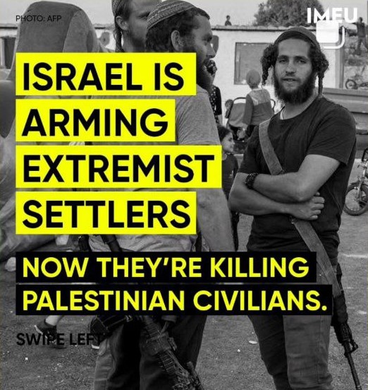Alla fornitura di armi e munizioni si sono aggiunti 20.000 mitragliatori distribuiti ai coloni israeliani in Cisgiordania, gli stessi che in innumerevoli casi si sono macchiati di crimini e uccisioni nei confronti dei civili palestinesi sfociando in veri e propri pogrom, azioni documentate anche in questi giorni con decine di uccisioni sommarie.