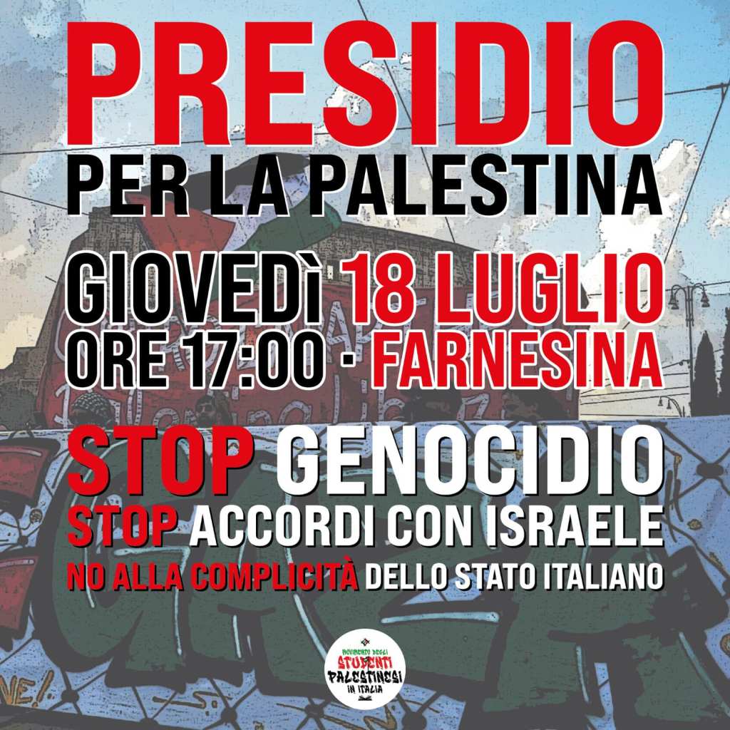 Il 18 Luglio, presso la Farnesina di Roma, il Movimento degli Studenti Palestinesi in Italia ha consegnato una lettera aperta al Ministro degli Esteri Antonio Tajani, con annesso presidio organizzato all’esterno del Ministero.