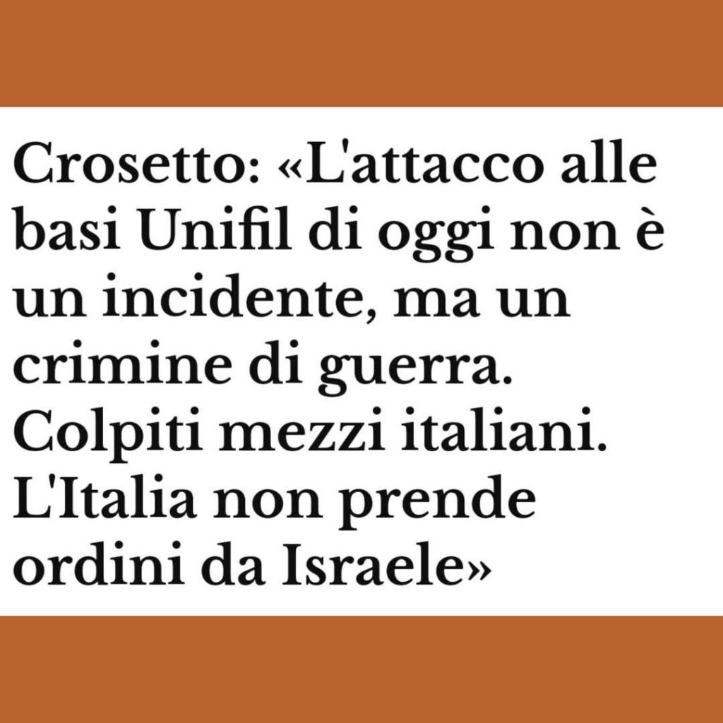 E sulle parole di Crosetto e Tajani : l’aver assecondato la “politica del caos” che stanno attuando gli Stati Uniti, fornendo un supporto logistico e di armamenti tra i più forti del blocco NATO, molto prima che dopo ci ricadrà in testa, e questo è un primo assaggio. Ora, che scuse volete da Israele, un paese che da 70 anni, spaventosamente nell’ultimo, avete sollevato da ogni onere di diritto internazionale, su richiesta statunitense?