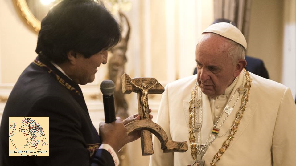 Pubblicato il 9 Luglio 2015   A caval donato…. Complimenti a Morales, dimostra ancora coraggio e ironia da vendere. Per una volta, comunisti e cattolici saranno d’accordo; da qualunque prospettiva lo guardi, e’ blasfemo… Ps. Notare la faccia del Papa. Per informazione, l’opera non è stata creata appositamente su richiesta di Morales, è la… Continua a leggere A caval donato… Il “Crucifijo comunista” di Luis Espinal Camps per il Papa.